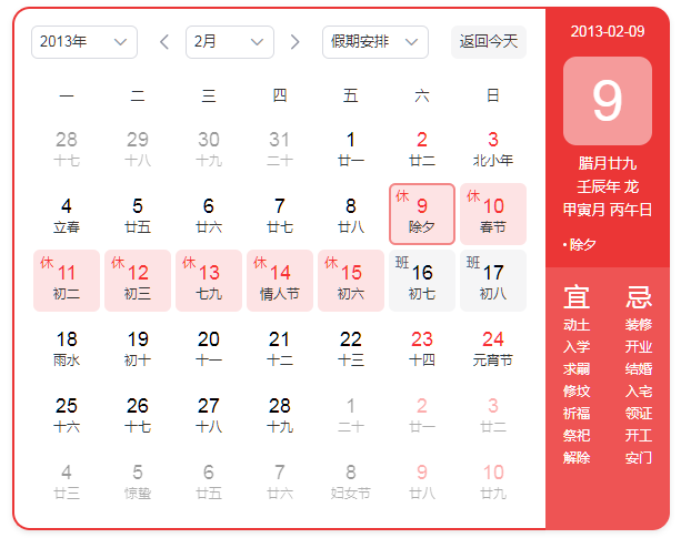 一、辦公室放假時間:2月9日至15日放假調休,共7天。2月16日(星期六)、2月17日(星期日)上班。