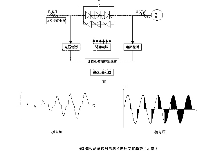 晶閘管高壓軟起動裝置,實際是串接在三相交流相電壓與三相交流異步(及同步)電動機輸入端之間。通過同時調(diào)節(jié)三個獨立的反并聯(lián)晶閘管閥組件的延時導(dǎo)通電角度、來改變?nèi)喈惒诫妱訖C(及同步)的交流輸入電壓幅值,因此改變了三相輸入交流電流的有效值從而達到恒流起動或者按一定斜率變化曲線起動或停車的目的。