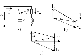a)補(bǔ)償電路 b)相量圖(欠補(bǔ)償) c)相量圖(過補(bǔ)償)