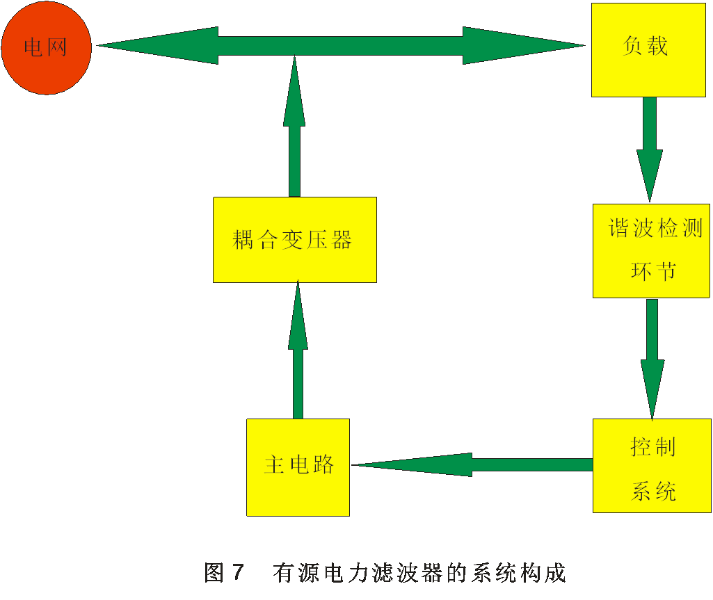工作原理為:首先通過諧波檢測環(huán)節(jié)檢測出系統(tǒng)中的諧波并給出需要補償諧波的參考值,然后通過控制系統(tǒng)根